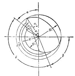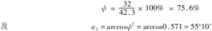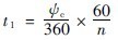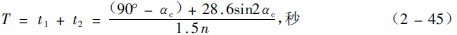 磨機一直是作圓運動的,但其中的鋼球的運動軌跡,一部分是圓曲線,另一部分是拋物線。因此,磨機轉一轉,鋼球的運動未必也就是一個循環。從圖3-2-10可以看出,鋼球從脫離點A真拋到落回點B,比圓運動快,因而鋼球總是超前的,換句話說,磨機轉一轉時,鋼球不只循環運動一次。設%"是鋼球作圓運動的時間,當磨機轉一轉時,用同樣速度作圓運動的鋼球轉過的圓心角為