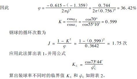 ,所以R2(或由它算出的K)的值依從轉速n而有一極限值。超過此極小值,多加的那些球就不能作拋物落下。所以上式中的J,既與裝球率
