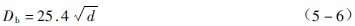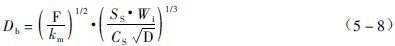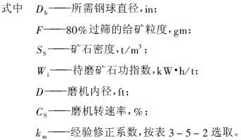 式(5-2)不能直接使用,必須針對特定礦石作兩組試驗,列出兩個方程式成一組,從方程組求解出i及n才能得出特定的球徑方程式,方可應用。為了方便應用,K.A拉蘇莫夫提出,對中硬礦石可以直接使用下面的簡便計算式計算Db(mm)